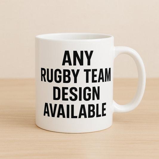 Custom Rugby Team Mug – 11oz Personalised Rugby Supporter Cup – Any Rugby Team Design Available
